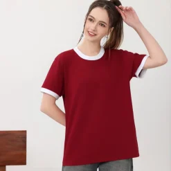 Breathable Fit Design Women Unisex Blocking Tee O-Neck 200gsm Ringer Trendy Men for Shirt Cotton Regular Color Solid