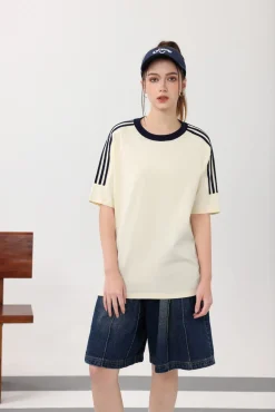 Design Women Plain Manufacturer Men 3-Bar Tees for Classic 200gsm Fit Cotton T-Shirts Sleeves Loose Breathable